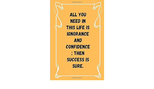All you need in this life is ignorance and confidence and success is sure. I think the meaning of ignorance in this saying means to ignore people or things that are unimportant to what you are trying to achieve in your lifeOnly focus on what is fundamental to your progressionJust use whats relevant and dont let traditional values or concepts that society or people have forced upon everyone influence you your thoughts or. To get the full value of joy you must have someone to divide it with.