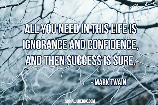 To succeed in life you need two things. We must have perseverance and above all confidence in ourselves. The true secret of happiness lies in taking a genuine interest in all the details of daily life. Lets begin at the most sensical point to start our analysisconfidence. All you need in this life is ignorance and confidence and then success is sure While it is impossible to know precisely what Twain meant by the above we can say with certainty what it translates to for us. Ignorance and confidence or so says Mark Twain. Mark Twain Introduction It is intriguing to see when an aspirant in Master Chef presents a dish the judges do not eat all. Then Success Is Sure. Cynical Cute Whimsey Twenty years from now you will be more disappointed by the things you didnt do than by the ones you did do.
