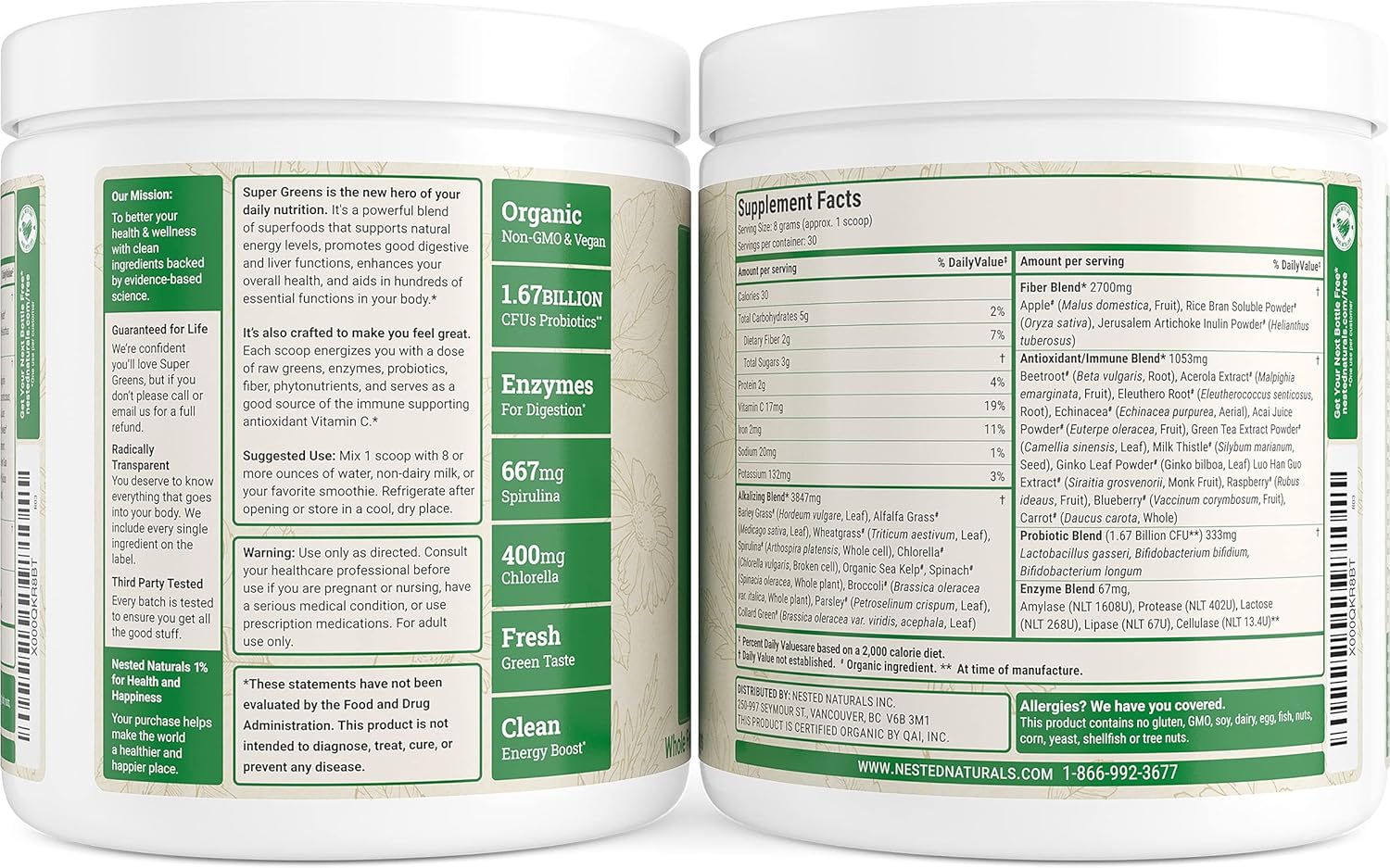 Nested naturals super greens. This superfood powder offers an all-in-one formulation for your health needs so you dont need to take dozens of separate supplements every day. Super Greens by Nested Naturals may be the solution to your needs. Improve Your Digestive Health.