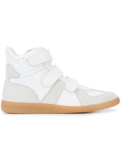 Fast delivery full service customer support. Leather sole with rubber injection at heel. MAISON MARTIN MARGIELA leather 3 strap high top sneakers.